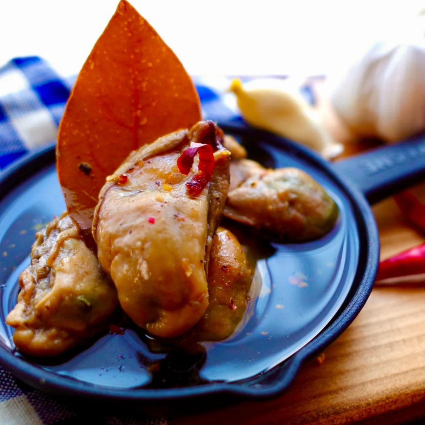 アヒージョとは、オリーブオイルとにんにくで食材を煮込んだ料理のことで、牡蠣の旨みを生かすよう作り上げました。